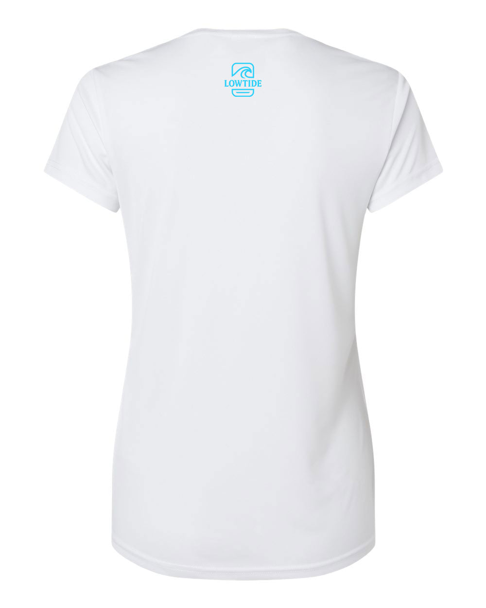 This women's performance t-shirt features a lightweight 3.5 oz./yd² fabric made from 100% microfiber polyester with our TIDESHIELD™ technology for moisture control and odor resistance, as well as UPF 50+ sun protection and a wrinkle-resistant finish. Designed with a feminine fit, it includes precise stitching, a self-fabric double-needle crewneck collar, side seams, and double-needle stitched cap sleeves and hem. The tapered sides enhance the tailored silhouette for a polished, professional look.