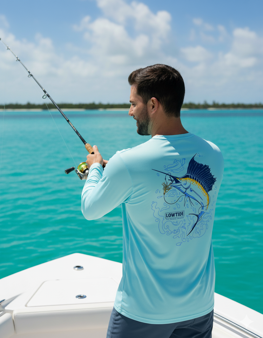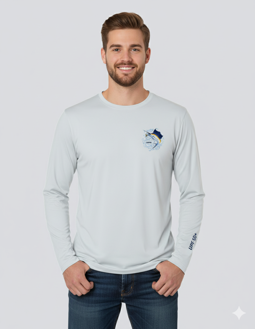 Crafted from a 4.1 oz./yd² blend of 91% polyester and 9% spandex microfiber, this performance crew offers advanced moisture and odor control. It features UPF 50+ sun protection and four-way stretch fabric to enhance movement. The wrinkle-resistant finish ensures a polished look, no matter where the tide takes you.