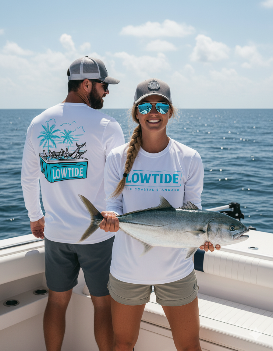 Crafted from a 4.1 oz./yd² blend of 91% polyester and 9% spandex microfiber, this performance crew offers advanced moisture and odor control. It features UPF 50+ sun protection and four-way stretch fabric to enhance movement. The wrinkle-resistant finish ensures a polished look, no matter where the tide takes you.